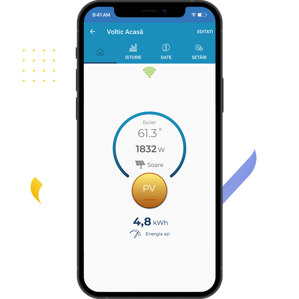 Cu aplicația puteți face o estimare a economiilor în diferite perioade: zi, lună și an. Astfel, puteți analiza comportamentul sistemului și puteți afla câtă energie consumați și câți bani economisiți.